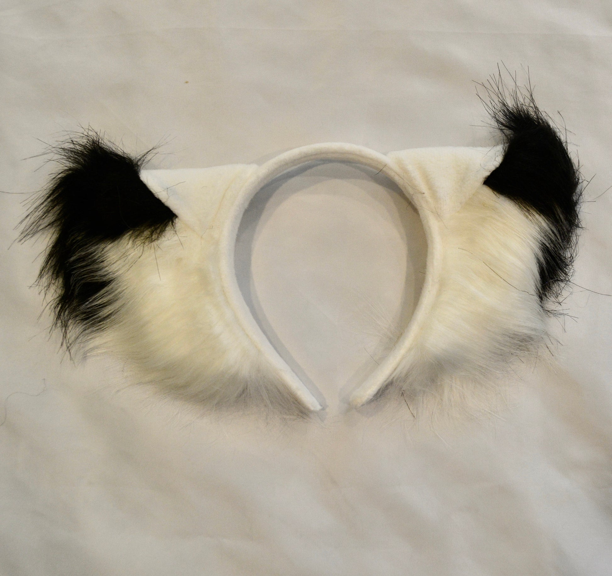 This cute little 3D Cat or wolf ear headband is the perfect accessory to your party look, it works for cosplay, dress up, Halloween costumes or just for fun. It has a fuzzy white band with black and white fur ears. This headband is adults size but could work for older kids too.