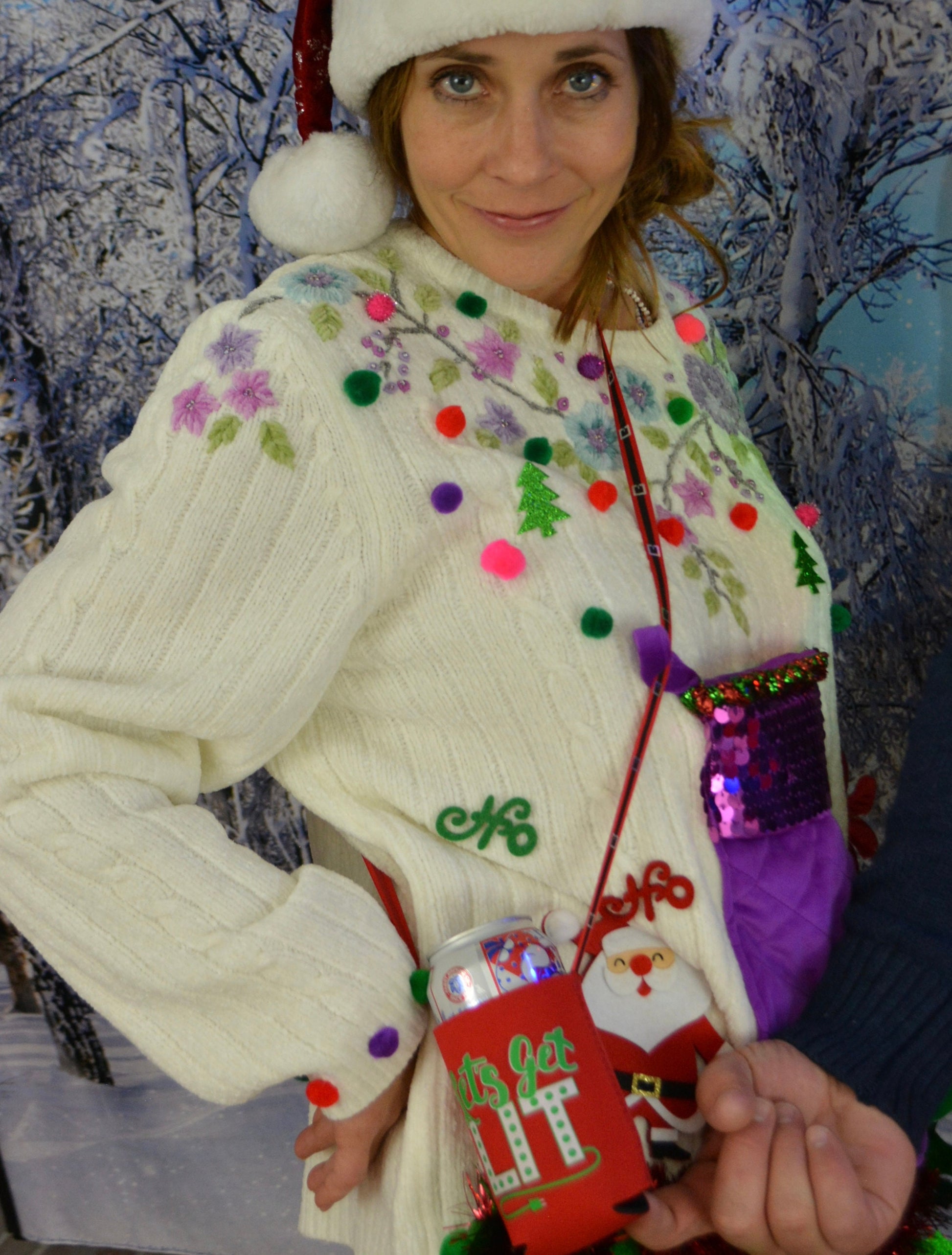 Get lit with this drink can cooler necklace! It is the perfect accessory to wear at your Ugly Christmas Sweater party. You can have hands free drinking! It's not only for beer but for soda as well. The can cooler is a standard size, 4" x 5" the necklace hangs approximately 24". It has been hand made in Salt Lake City Ut! You get a version of this beverage holder necklace. We use a variety of coolers and ribbon for the necklace. If you want to know which version you will get send us a message. Makes a great prize for an ugly sweater contest winner. *this listing is for the necklace only.