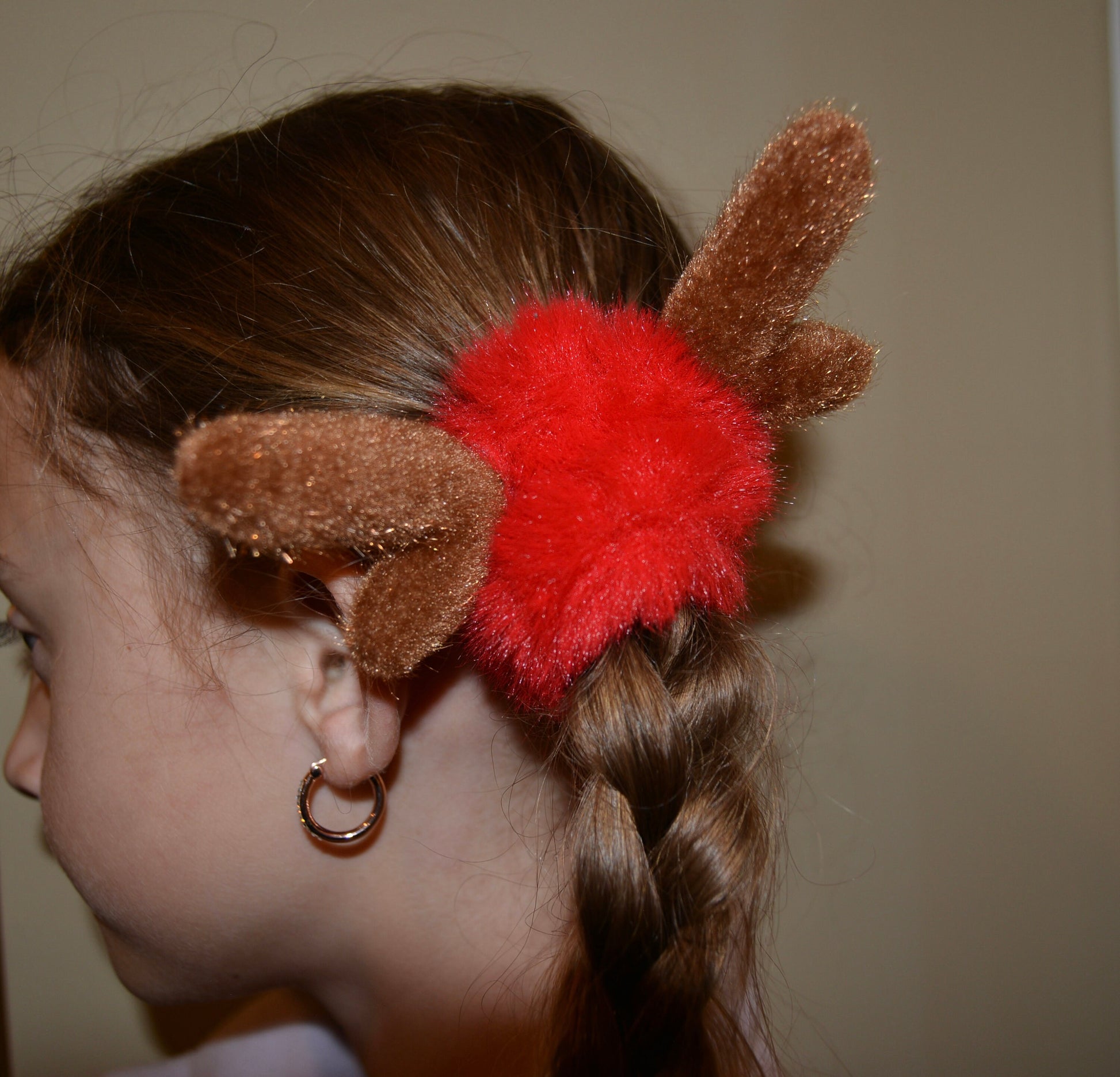 Reindeer scrunchy, Christmas accessory for hair, cute and soft, ugly sweater party, kids or adults