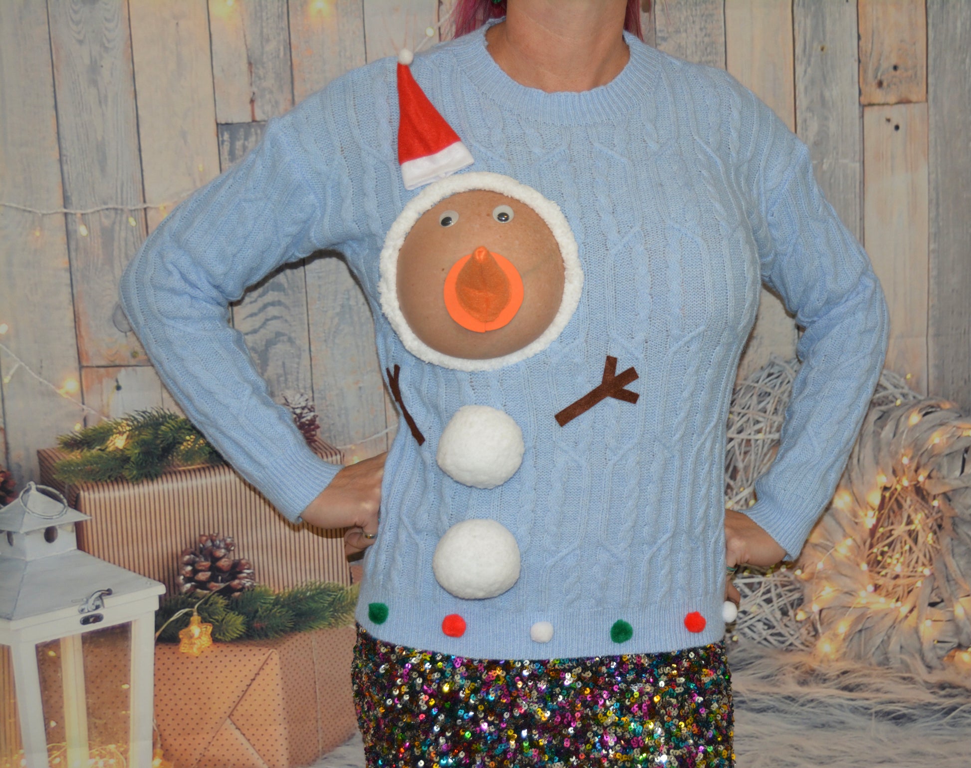 Sexy Ugly Christmas Sweater, snowman boobs