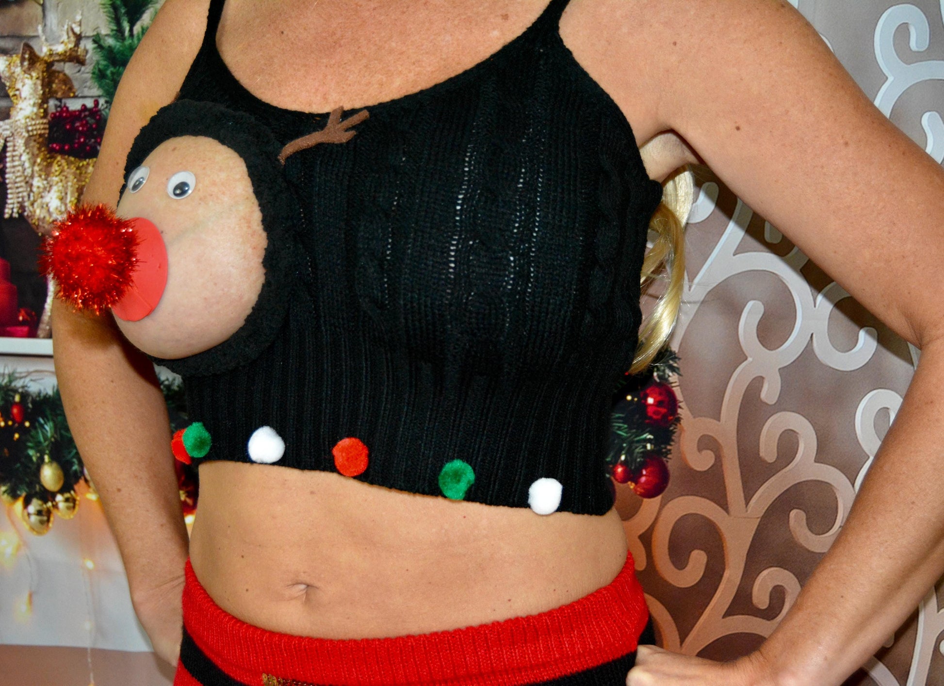 Sexy Ugly Christmas Sweater crop top, it is NOT A PLASTIC boob, cut out, see details, boob, breast, jumper, reindeer boob, black