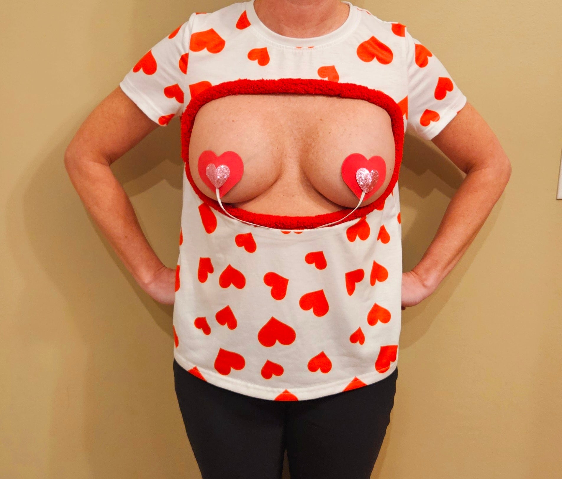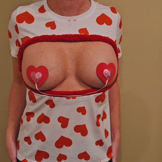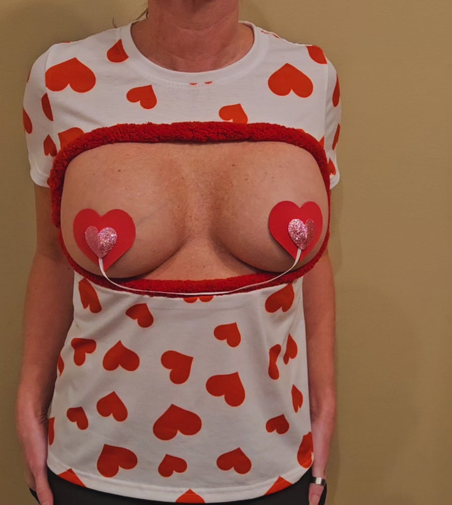Sexy Valentines day shirt, Made For BARE BREAST, boob out, heart pasties, women's, boobs, breast, t-shirt, pastie, heart, 2 boob cut out