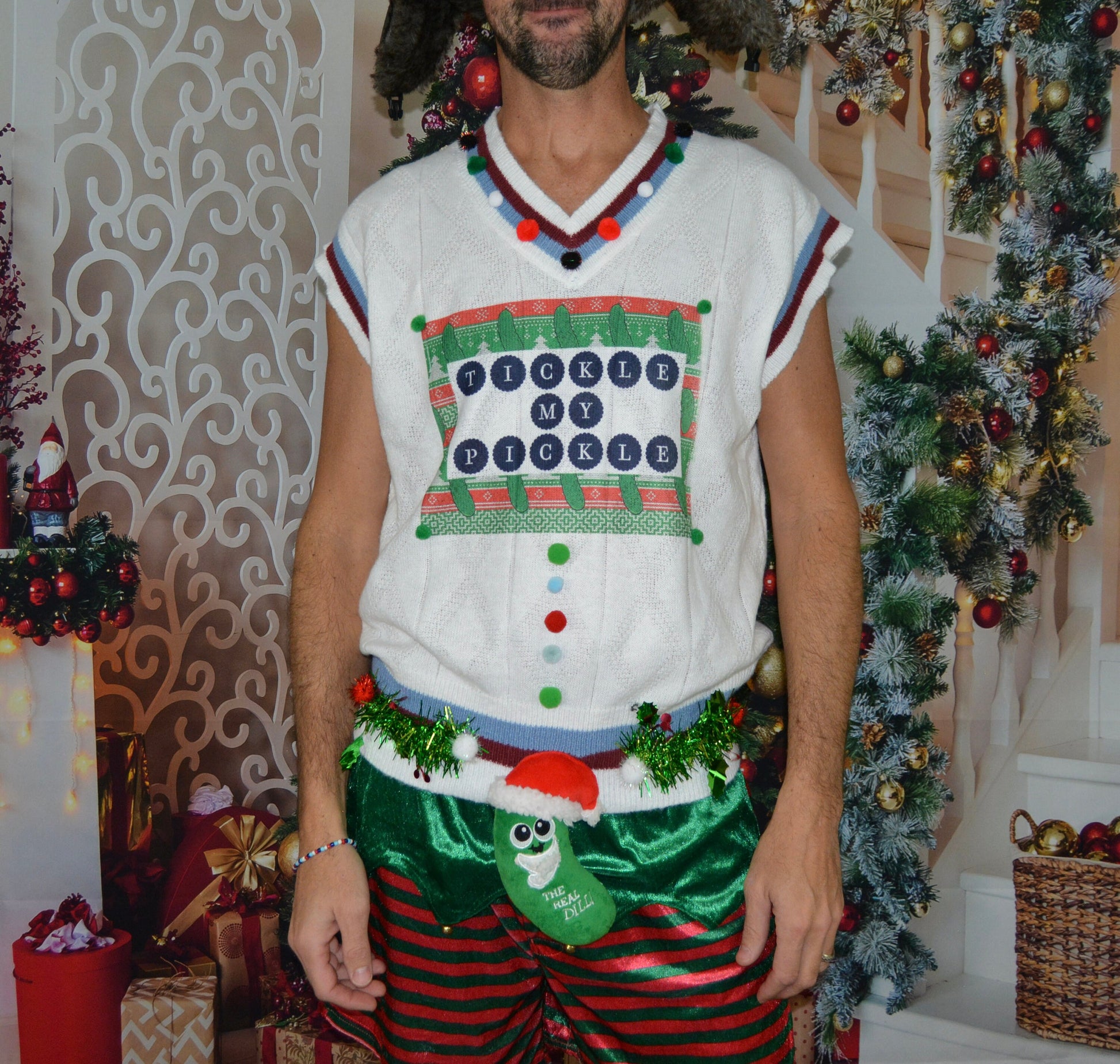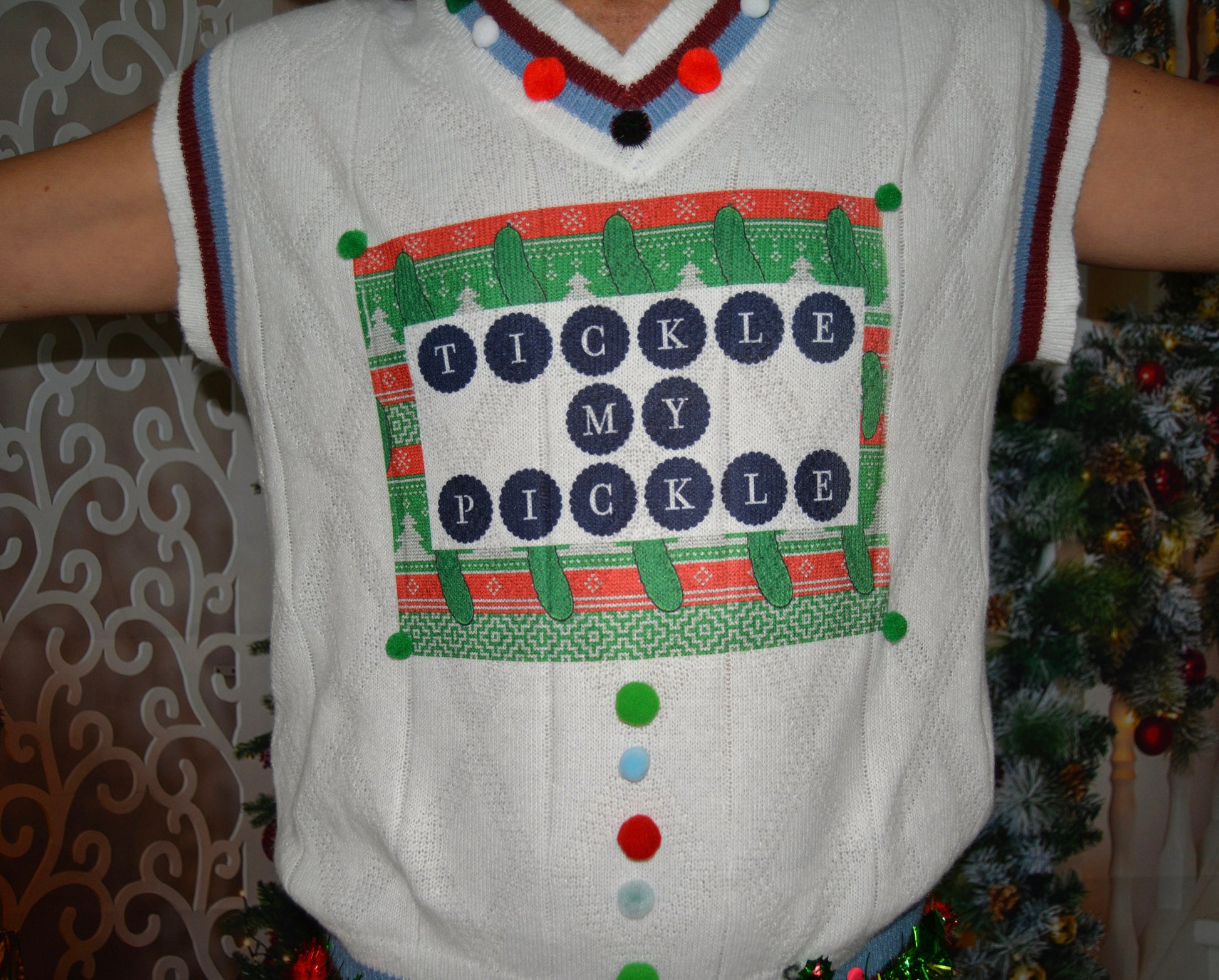 Ugly Christmas sweater men, vest, Tickle my pickle, large and 2x men, Christmas pickle, party sweater, naughty, funny, dirty, contest winner